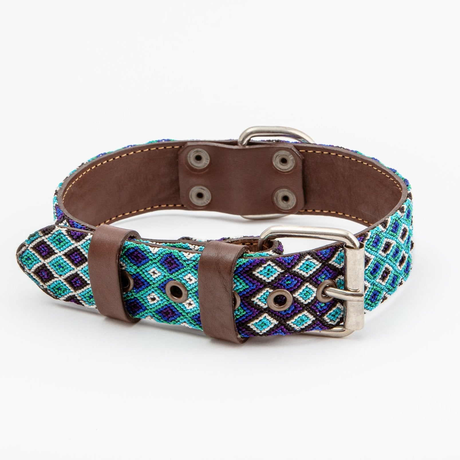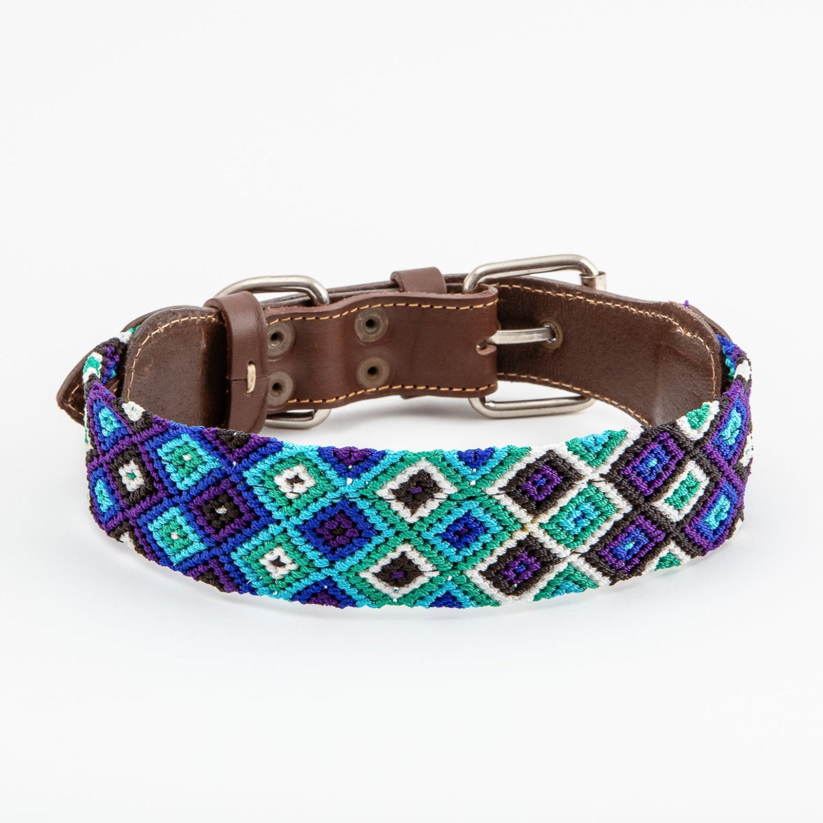 The Tulum handmade dog collar combines Italian vegetable-tanned leather with handwoven macramé from Mexican artisans. This premium, durable dog collar offers comfort, strength and a unique artisan design for dogs of all sizes.