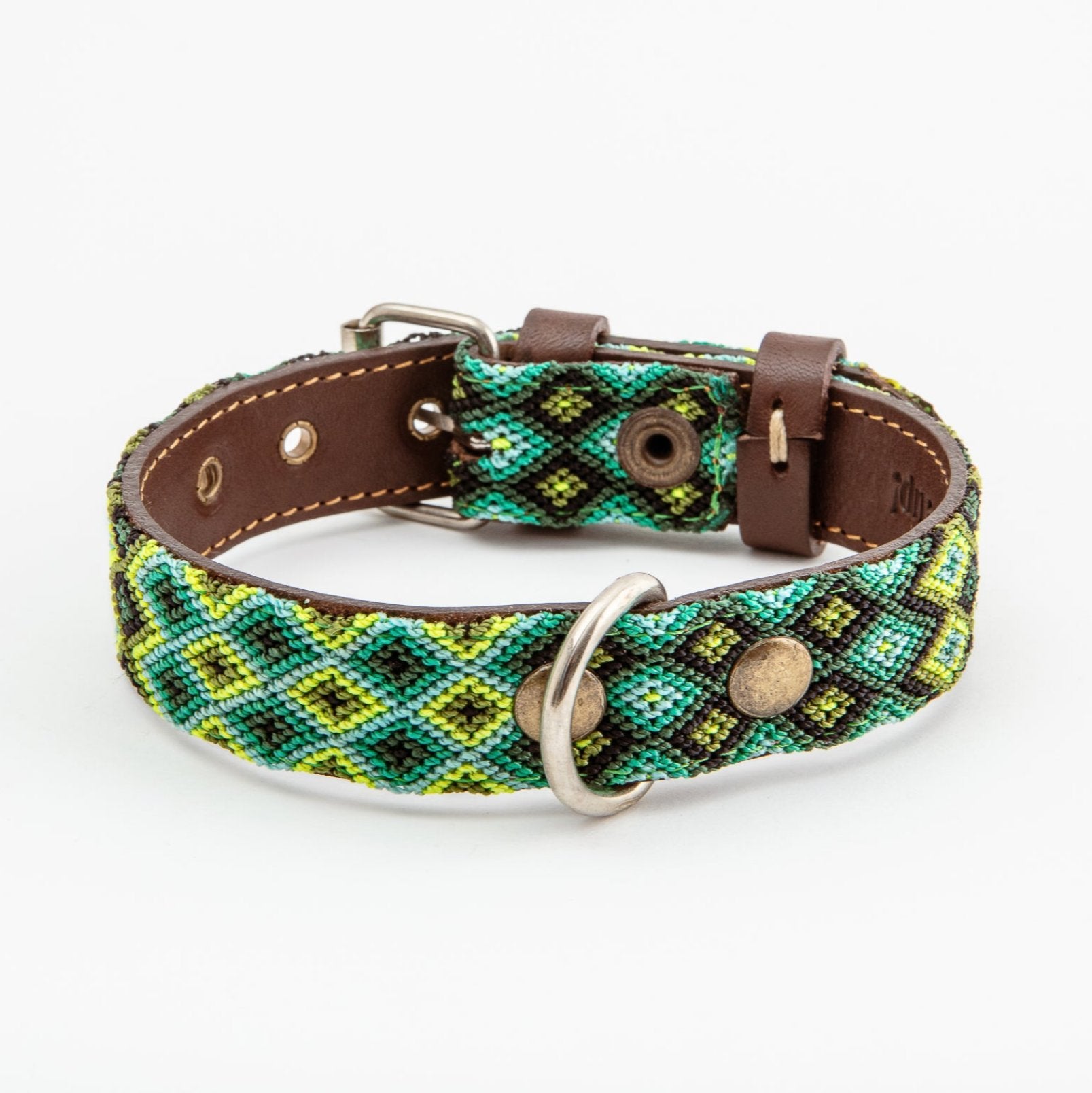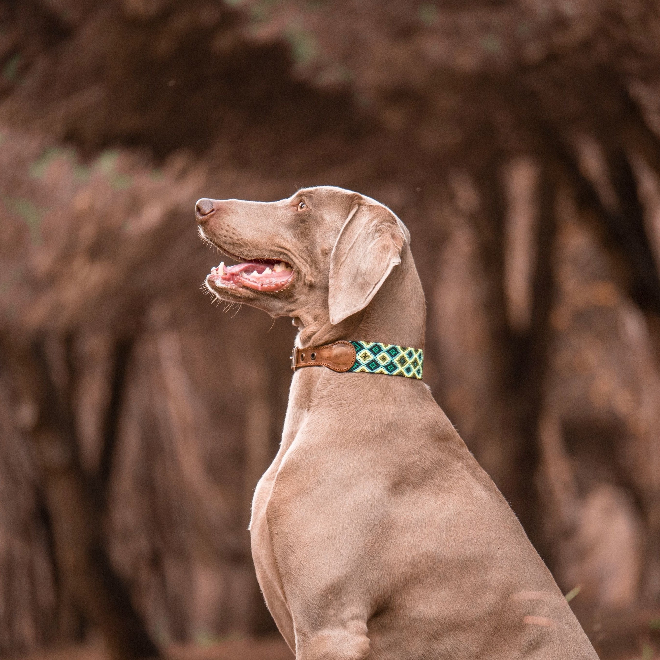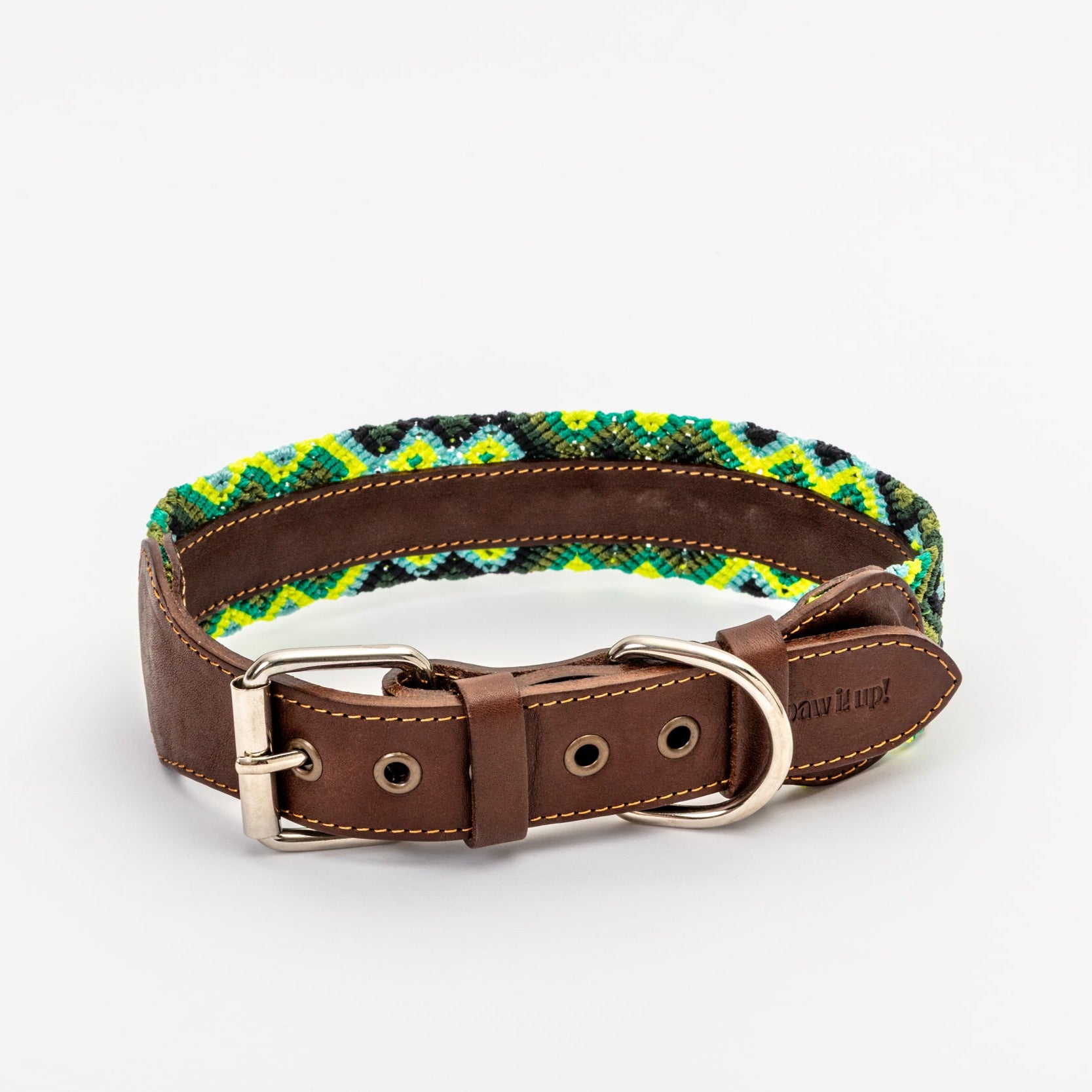The Veracruz handmade dog collar combines Italian vegetable-tanned leather with handwoven macramé from Mexican artisans. This premium, durable dog collar offers comfort, strength and a unique artisan design for dogs of all sizes.