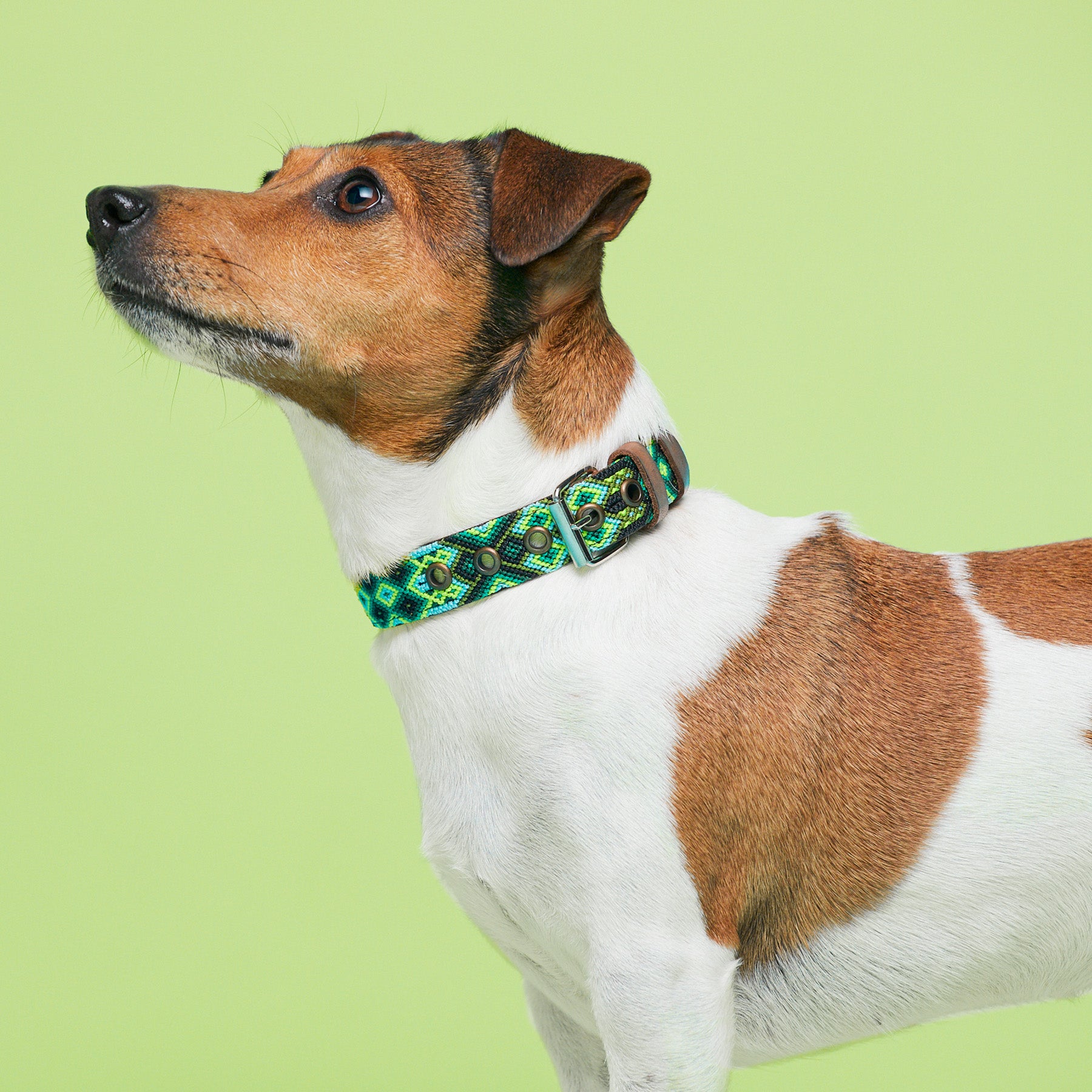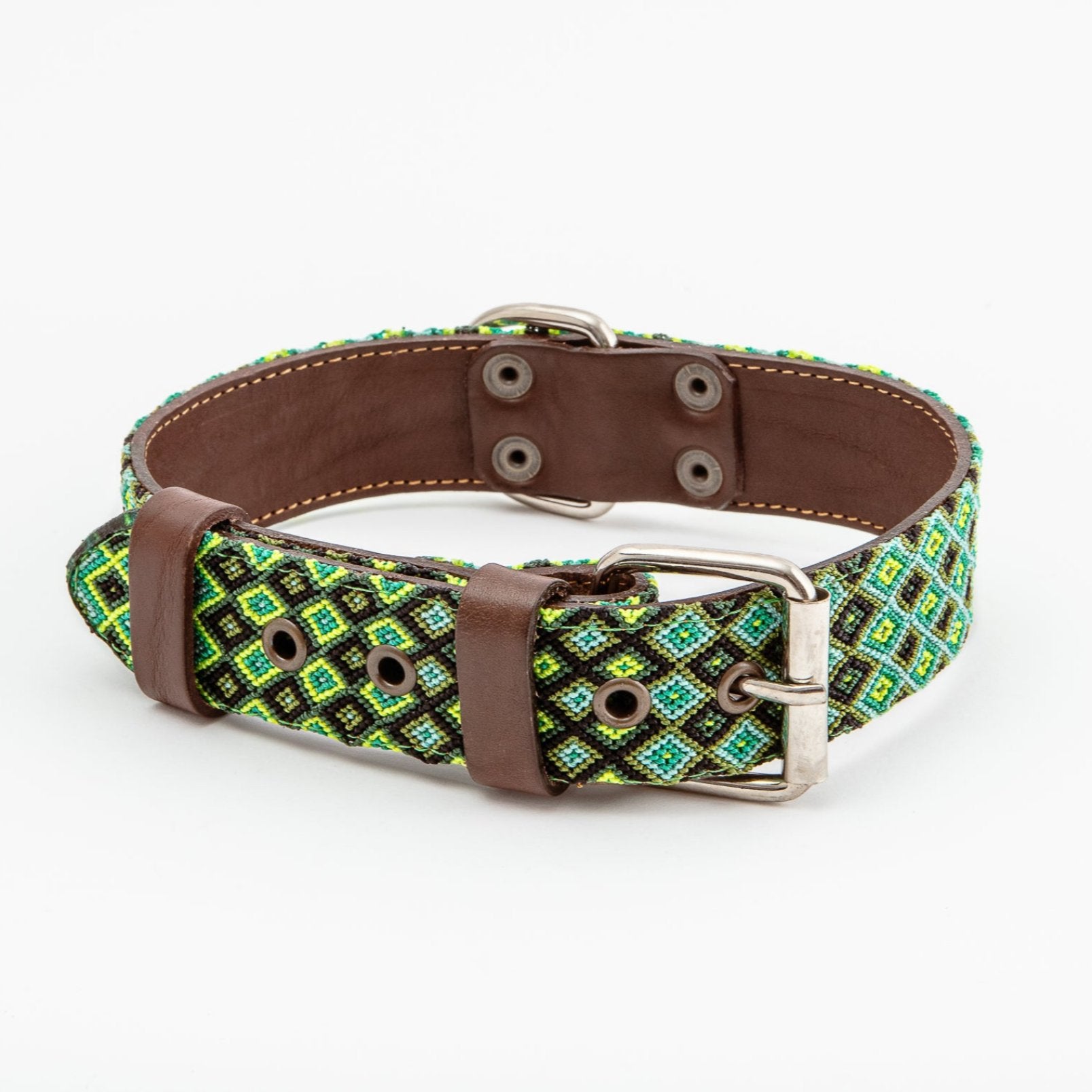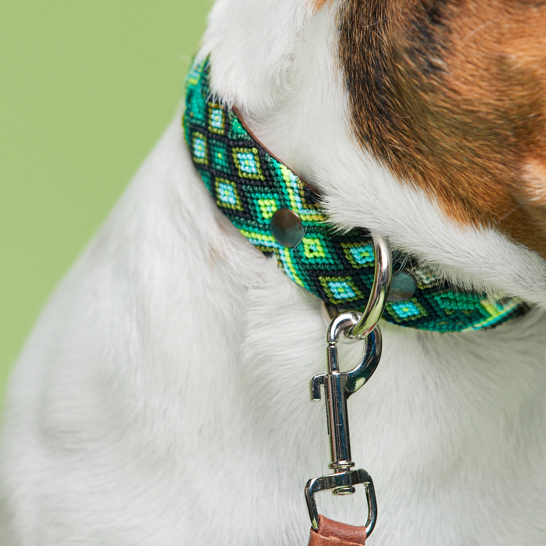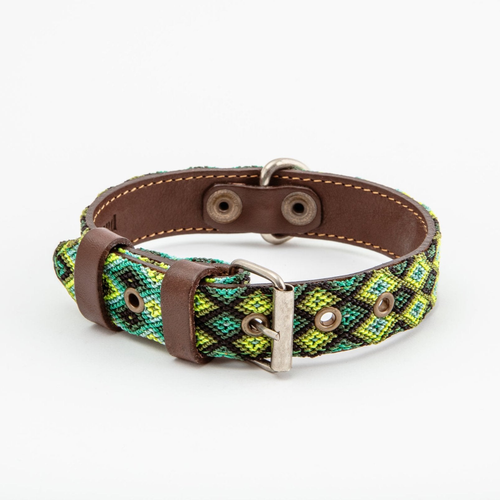 The Veracruz handmade dog collar combines Italian vegetable-tanned leather with handwoven macramé from Mexican artisans. This premium, durable dog collar offers comfort, strength and a unique artisan design for dogs of all sizes.