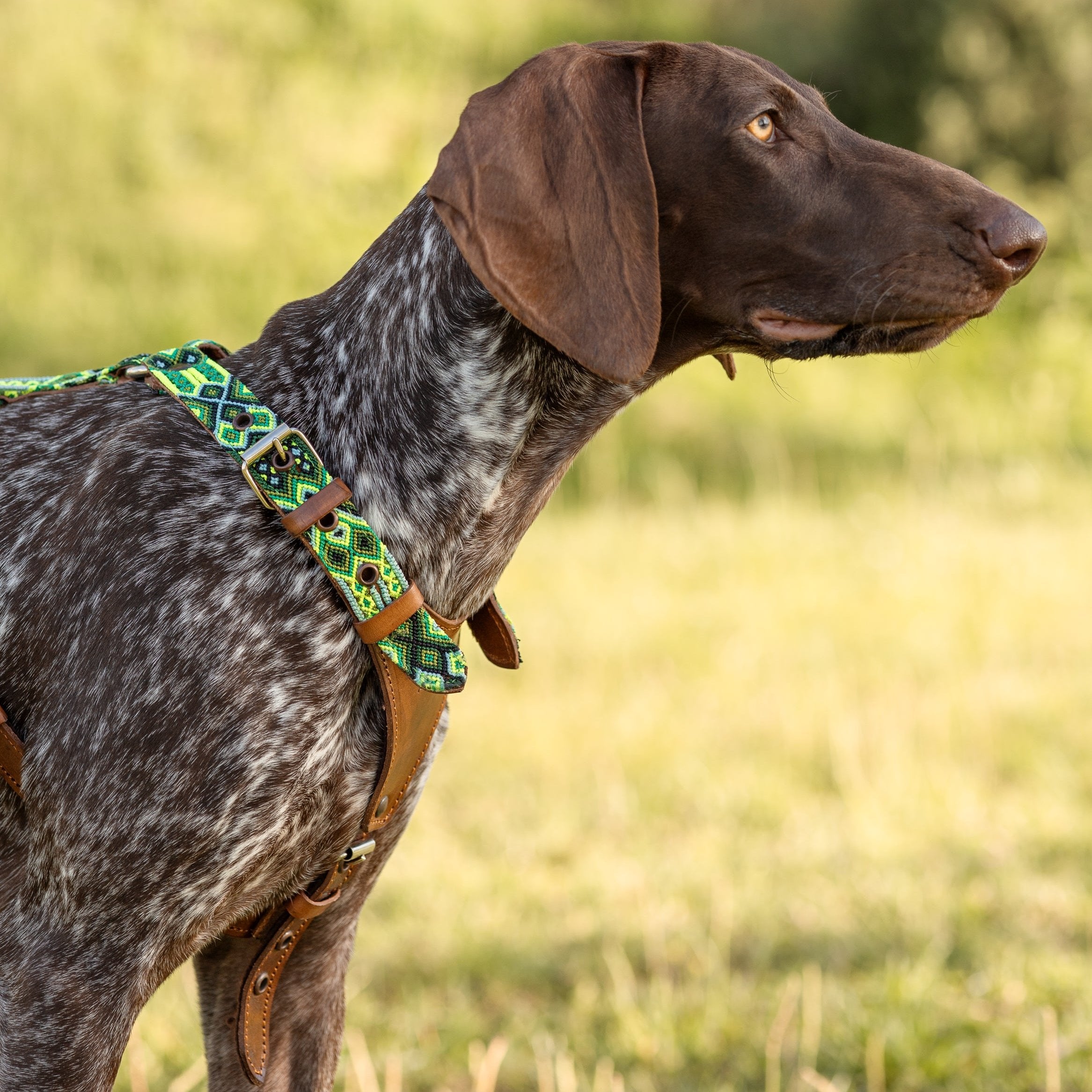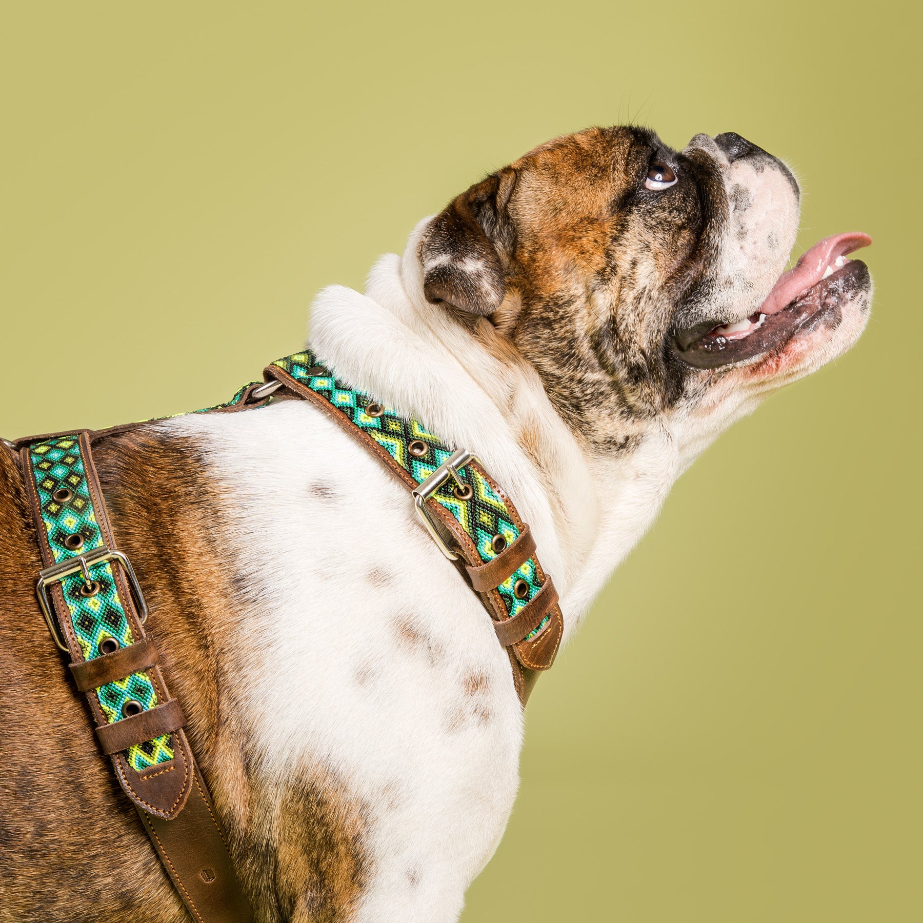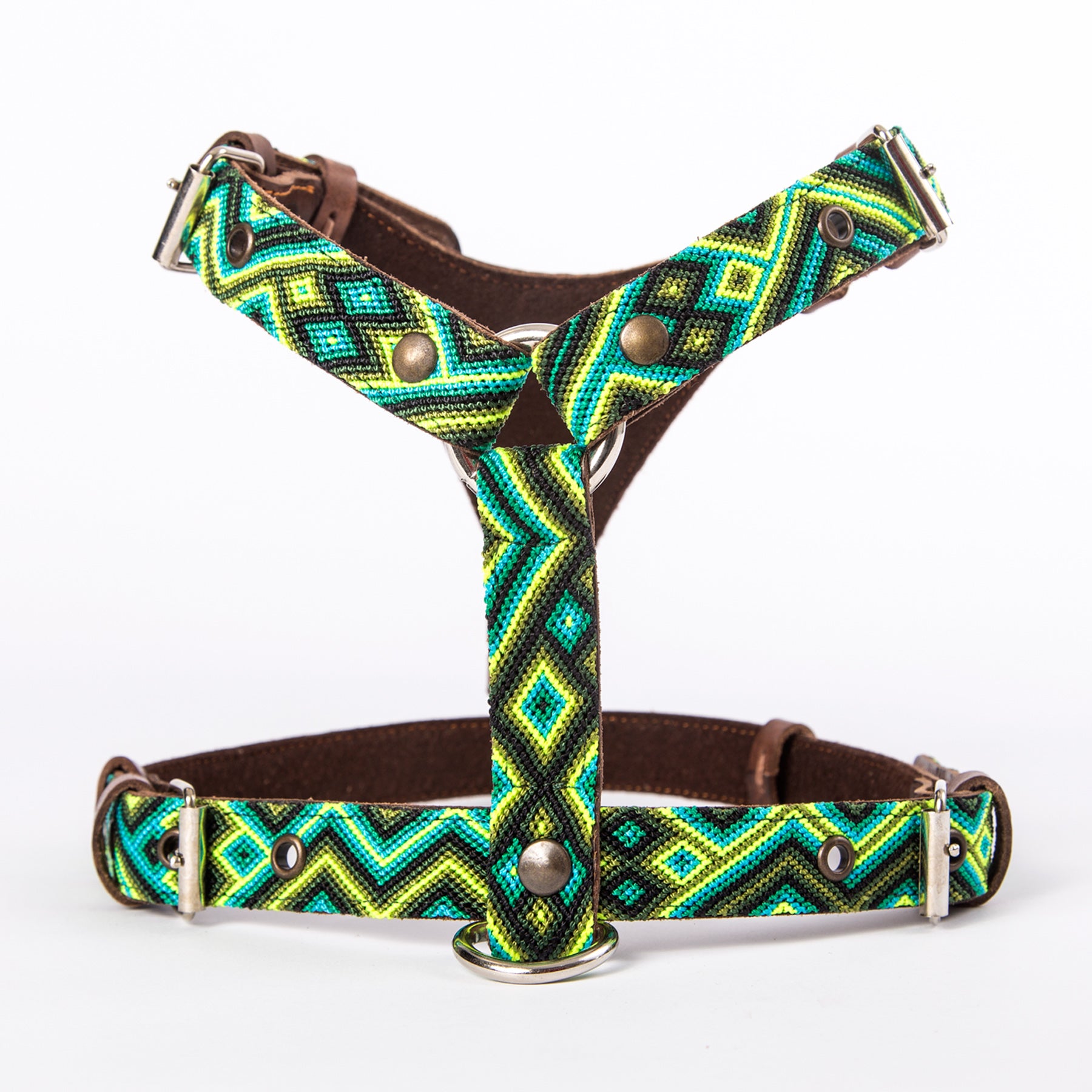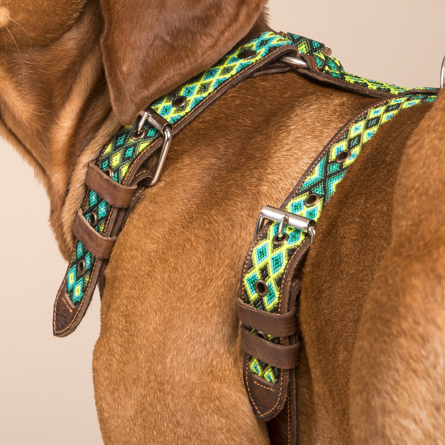 The Veracruz handmade dog harness combines Italian vegetable-tanned leather with handwoven macramé from Mexican artisans. This premium, durable dog harness offers comfort, strength and a unique artisan design for dogs of all sizes.