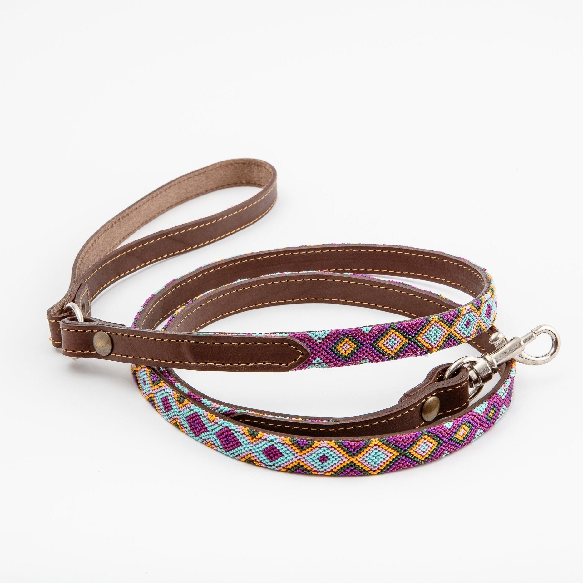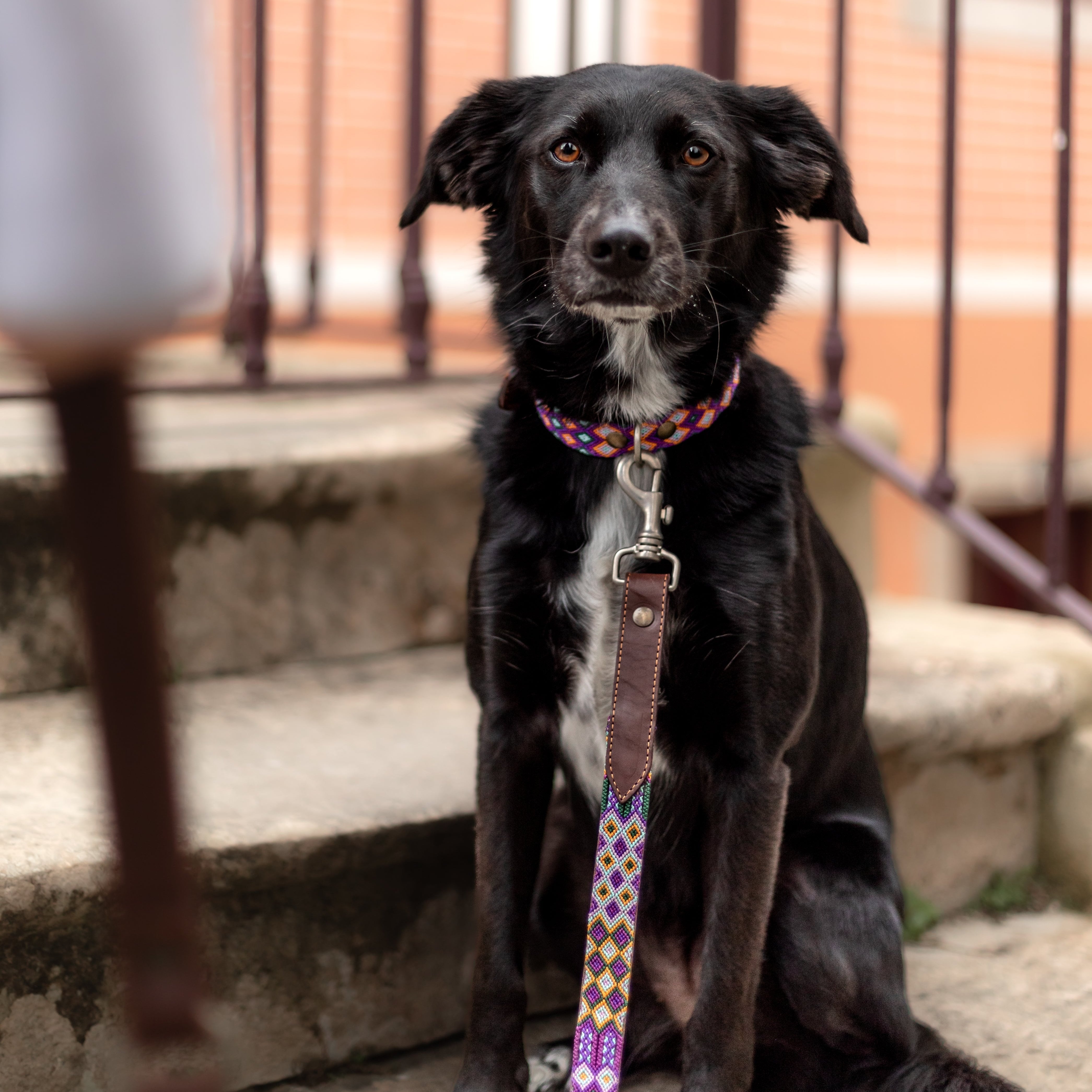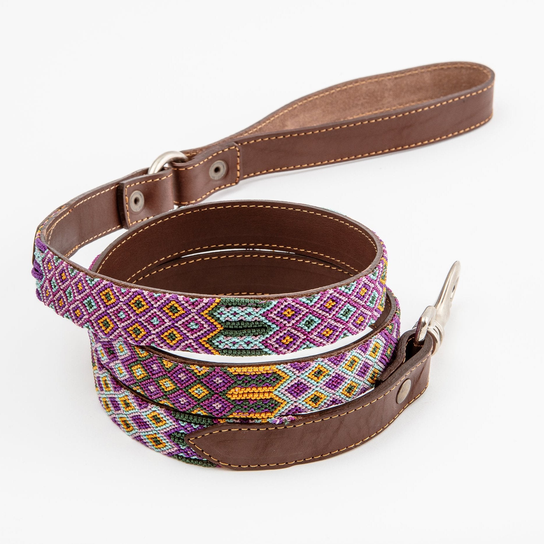 The Huatulco handmade dog lead combines Italian vegetable-tanned leather with handwoven macramé from Mexican artisans. This premium, durable dog lead offers comfort, strength and a unique artisan design for dogs of all sizes.