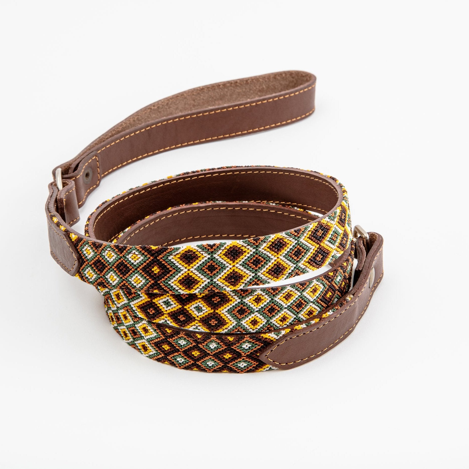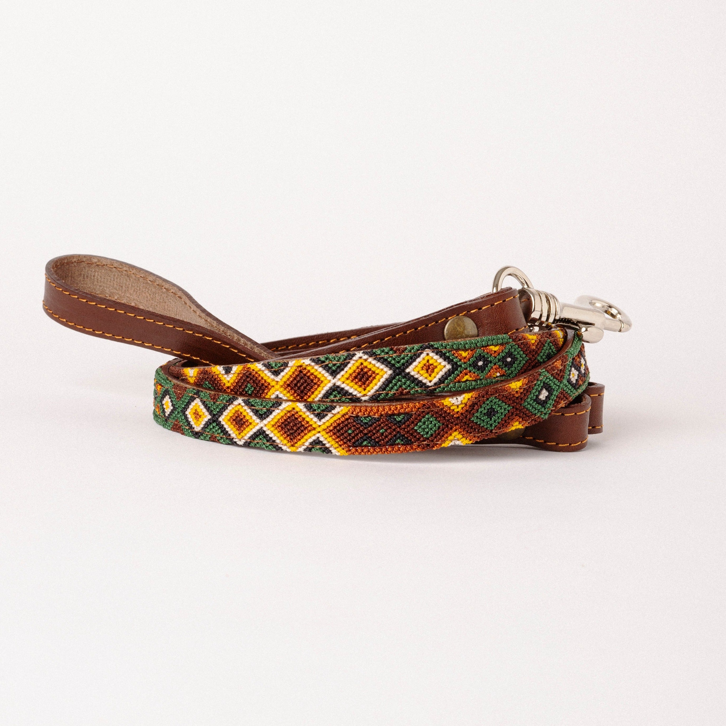 The Zacatecas handmade dog leash combines Italian vegetable-tanned leather with handwoven macramé from Mexican artisans. This premium, durable dog leash offers comfort, strength and a unique artisan design for dogs of all sizes.