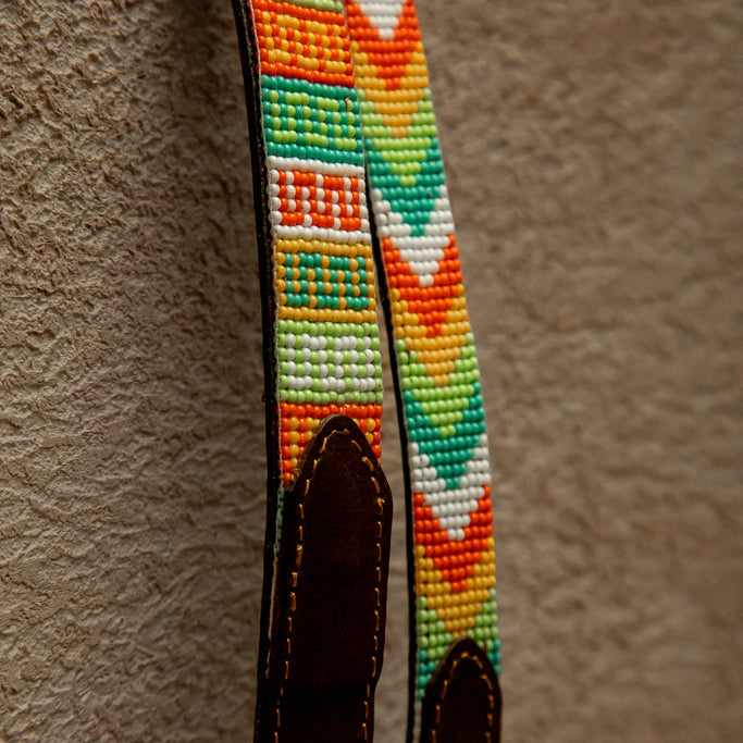 The leads are made from high-quality materials and feature an intricate beading pattern. Each piece is meticulously beaded using vibrant, symbolic patterns that reflect the rich cultural heritage of Colombia.