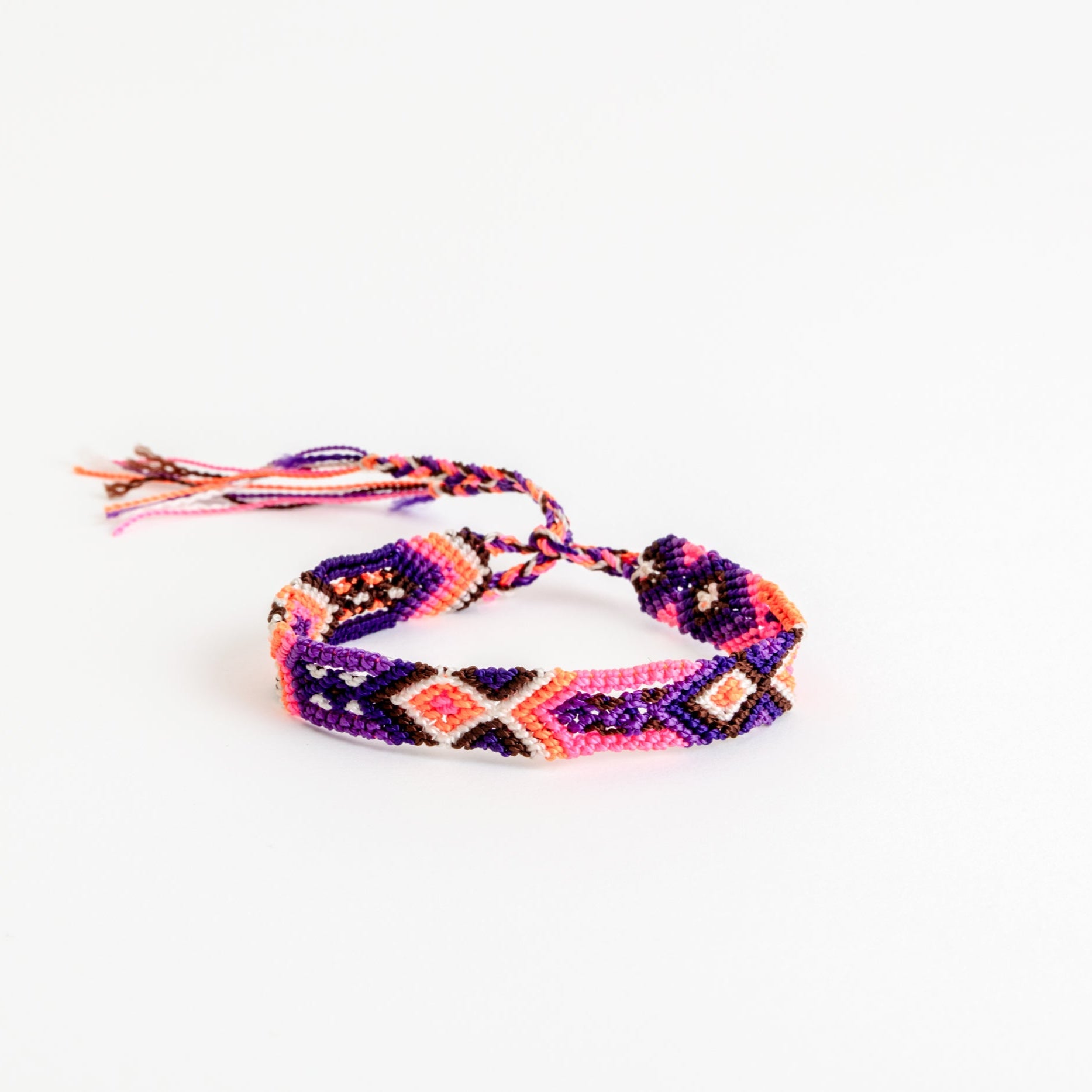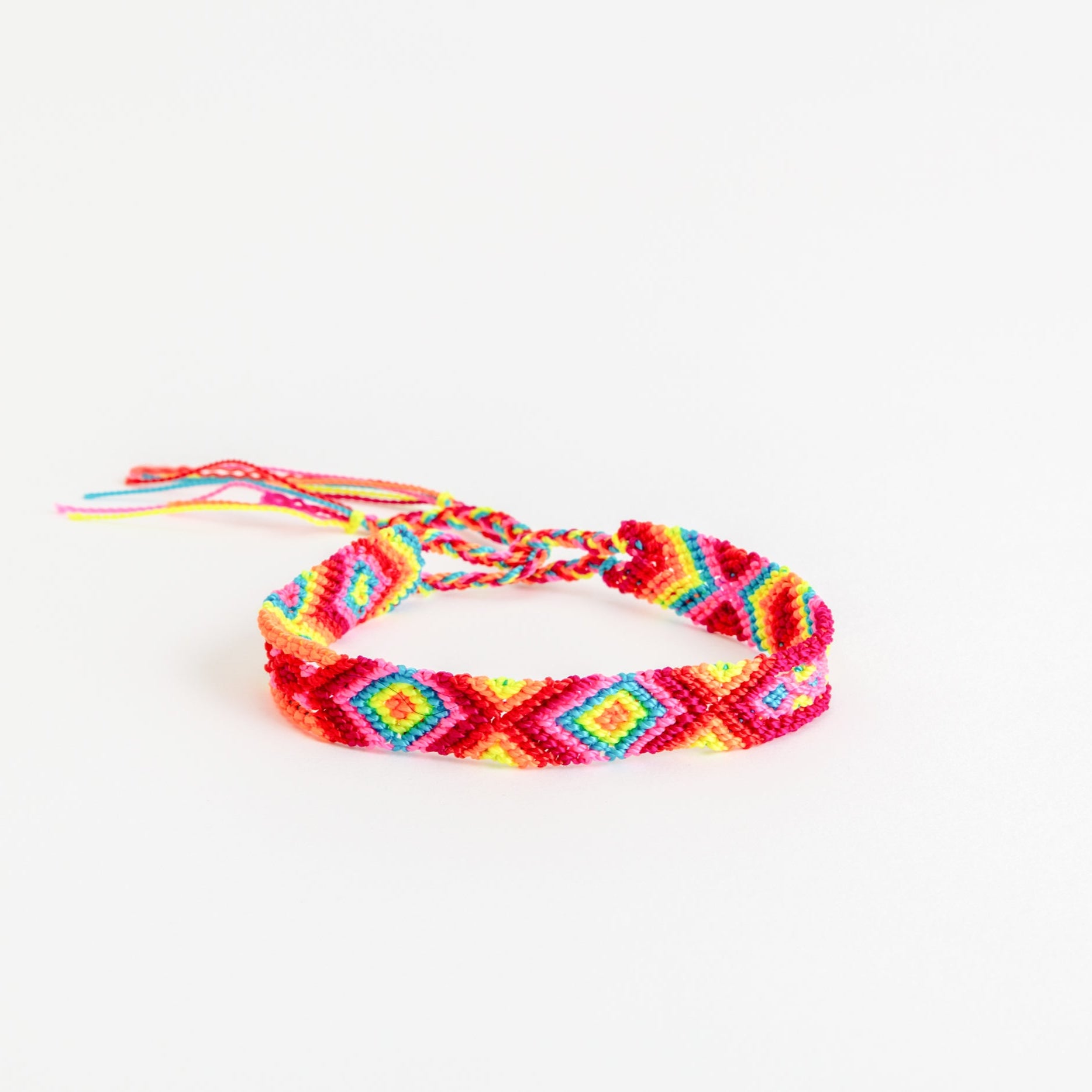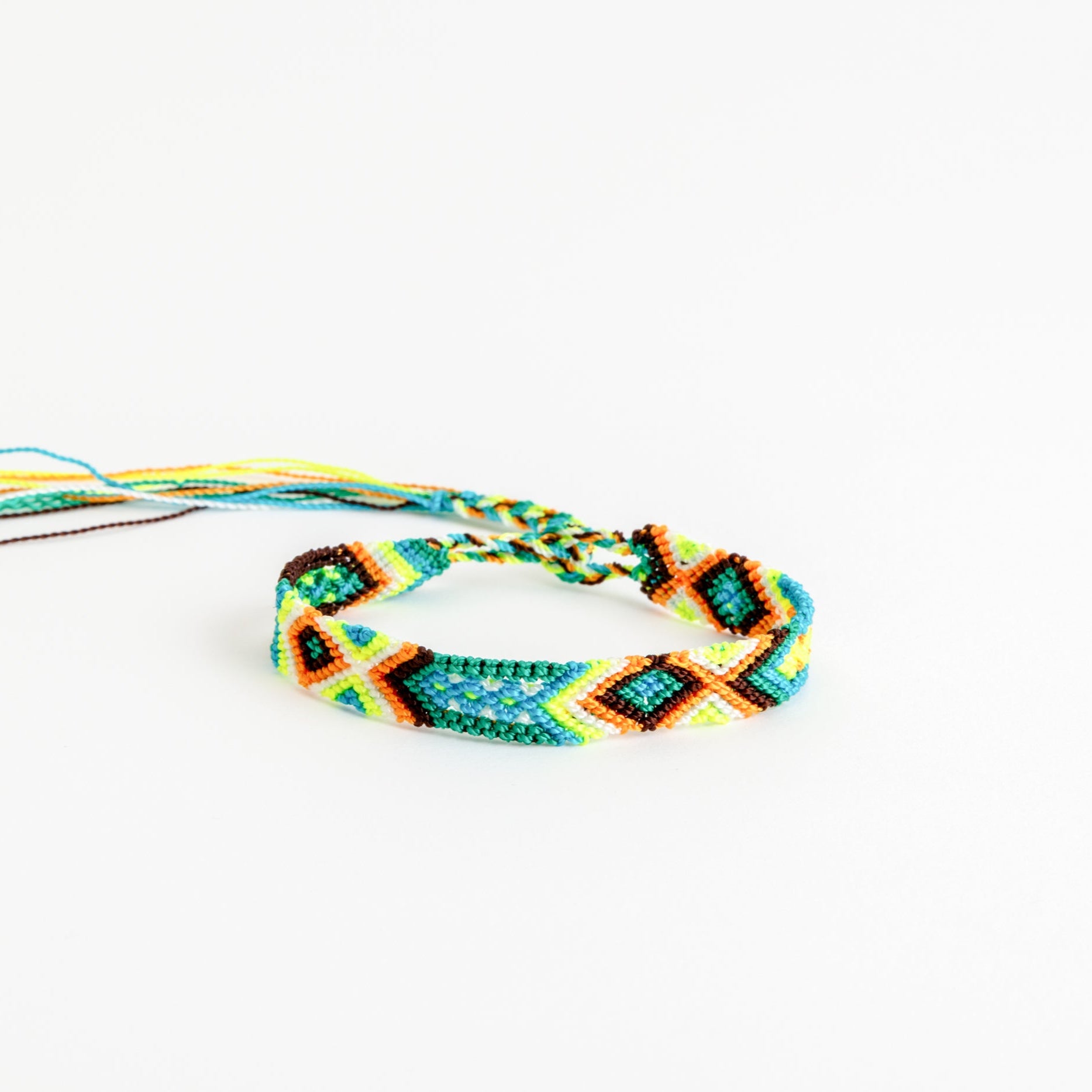 Pulseras tejidas a mano con hilos de algodón por artesanas Mexicanas. Son totalmente ajustables y recomendamos usar varias pulseras de diferentes colores, verás que te encantará el resultado.