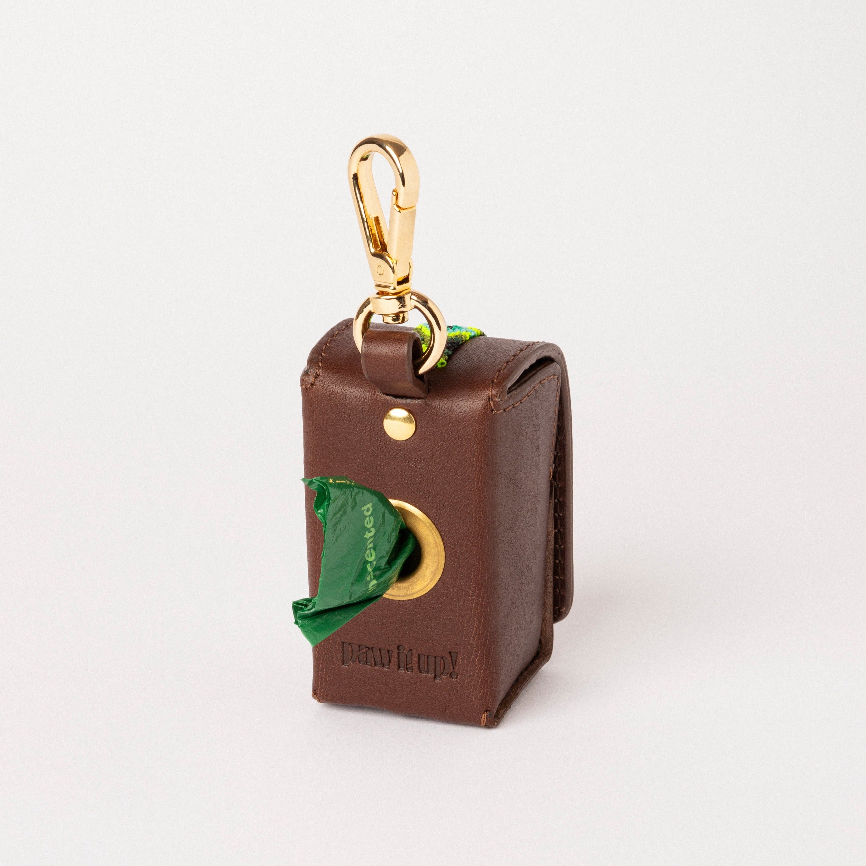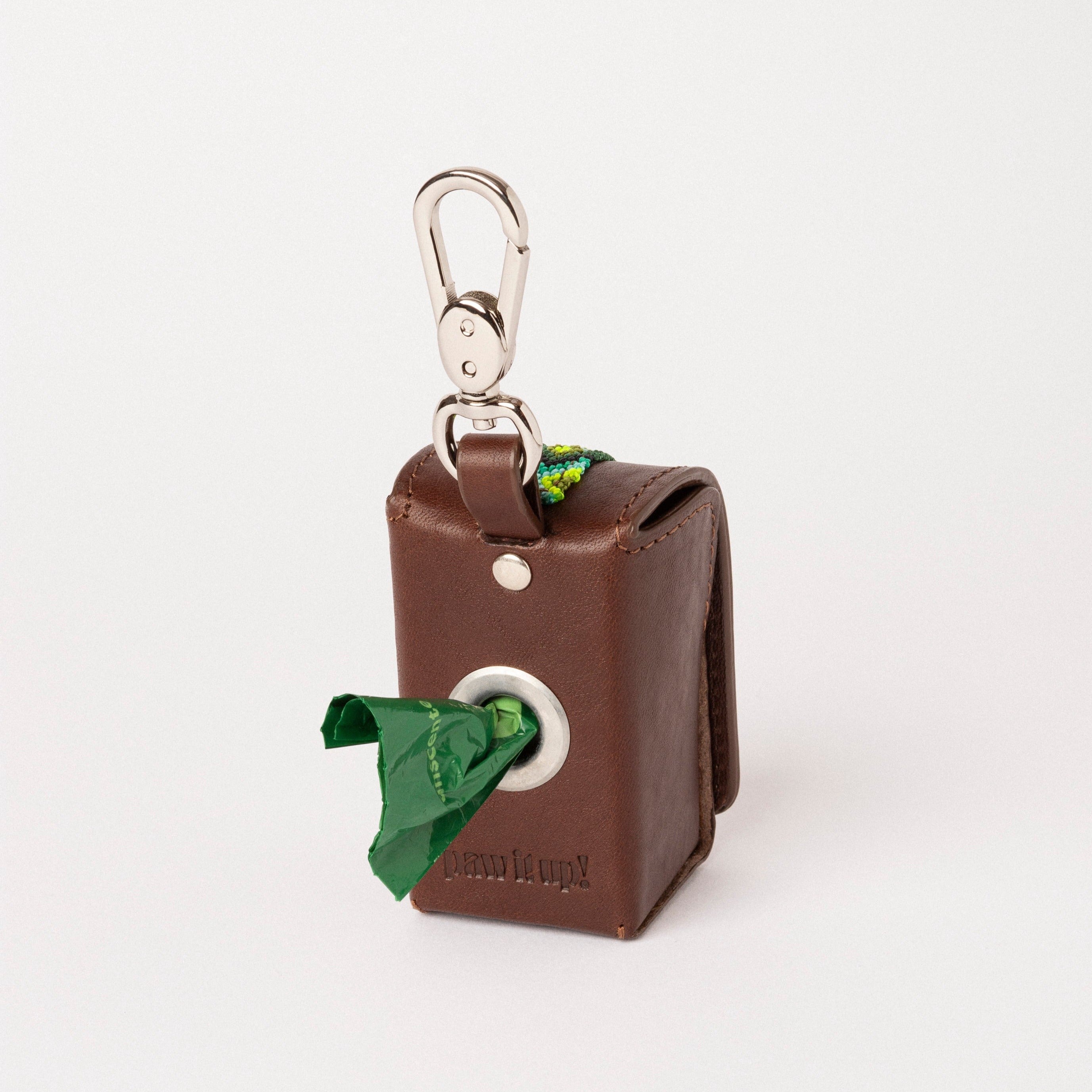Un accesorio imprescindible en cualquier paseo: nuestro portabolsas. Guarda las bolsas en este elegante estuche de piel, listo para ser extraído en cualquier momento.
