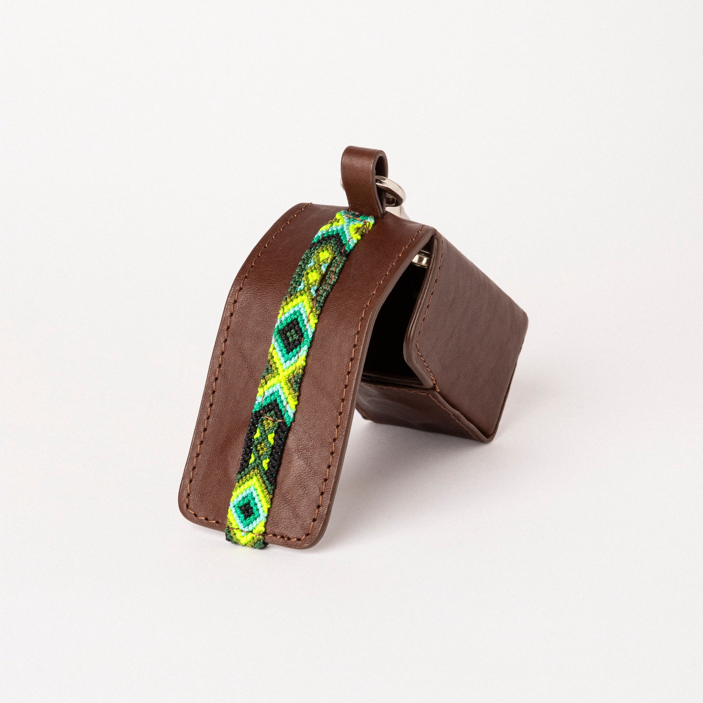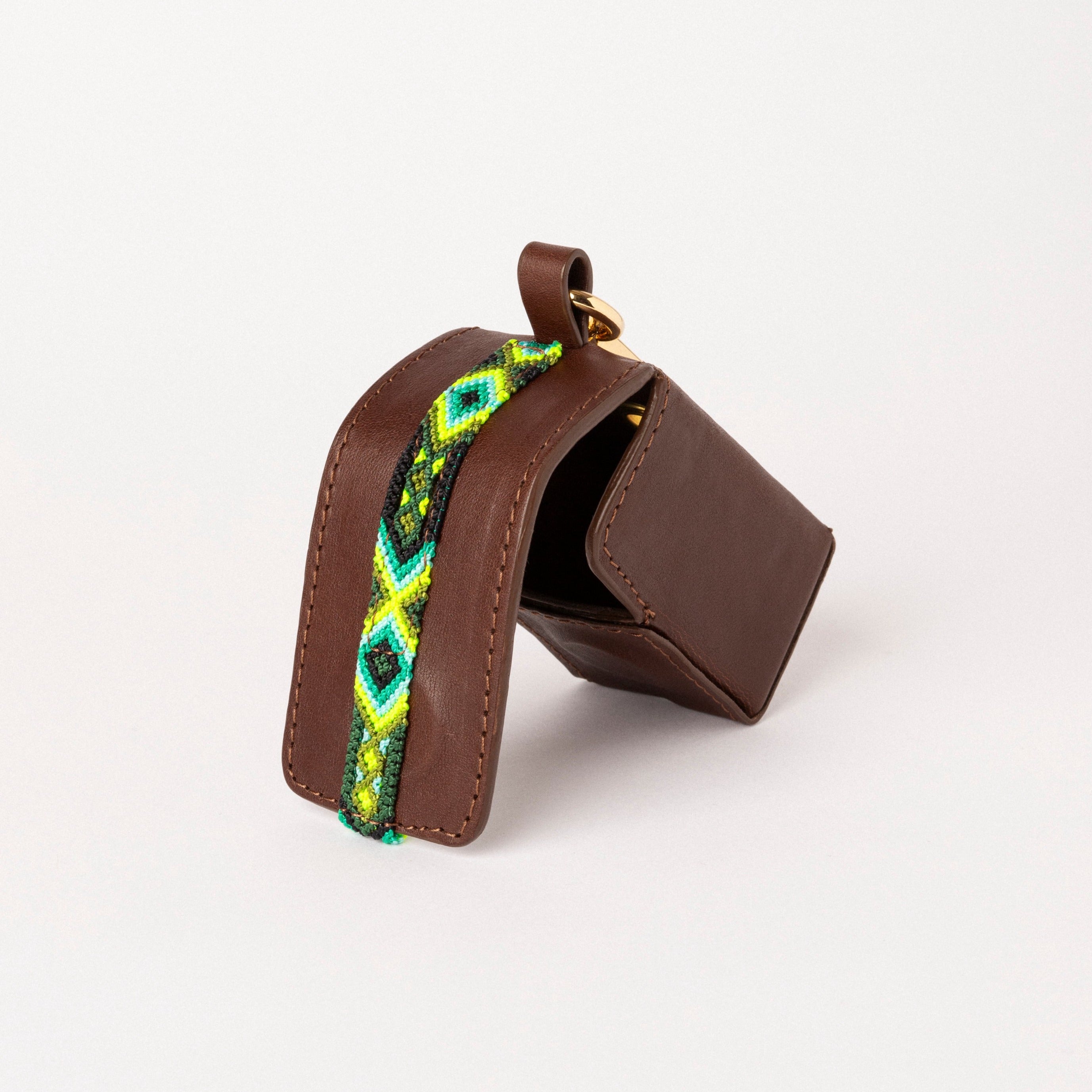 Cada portabolsas está hecho a mano por artesanos portugueses y bordado a mano por artesanas mexicanas utilizando la técnica maya "trenzado a mano", también conocida como, macramé. Cada producto está hecho a mano, haciendo de cada pieza un accesorio único, preservando el arte de los artesanos. Cada portabolsas es cuidadosamente cortado y armado, y luego cosido para mayor resistencia.