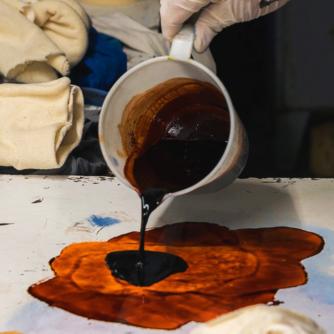 Our leather is processed through traditional craftsmanship, using tannic extracts from renewable vegetable sources such as trees, barks and fruits, giving the leather a natural coloration and antibacterial properties. This technique assumes a low environmental impact during the disposal of the final product and the waste derived from the processing during the different phases. Our leather is dyed and greased by hand with a base of natural oils and waxes, characterized by high resistance to wear and traction.